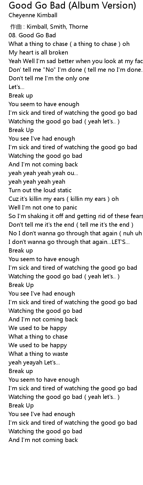 | 歌曲 | Good Go Bad (Album Version) |