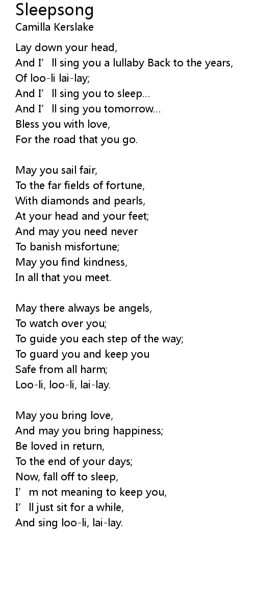 | Lay down your head, | |
