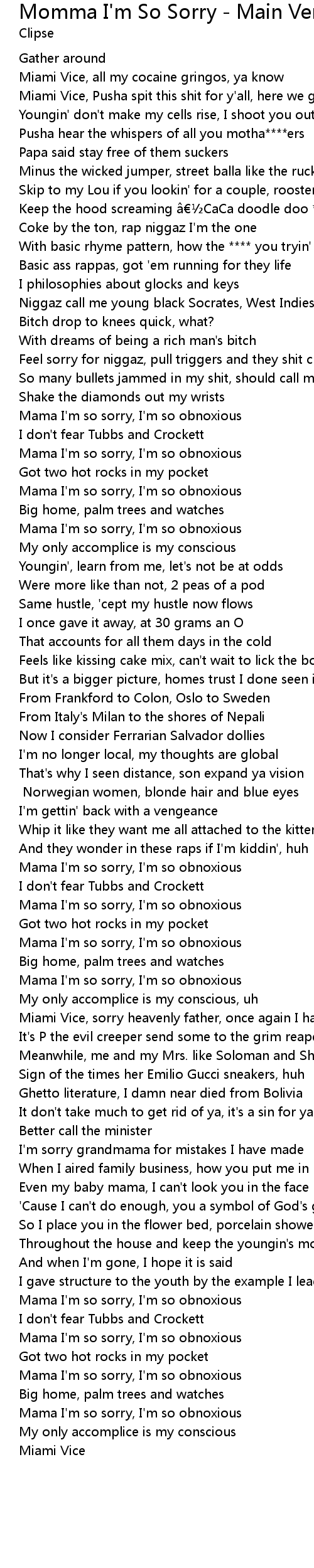 | Miami Vice, Pusha spit this shit for y'all, here we go | |
