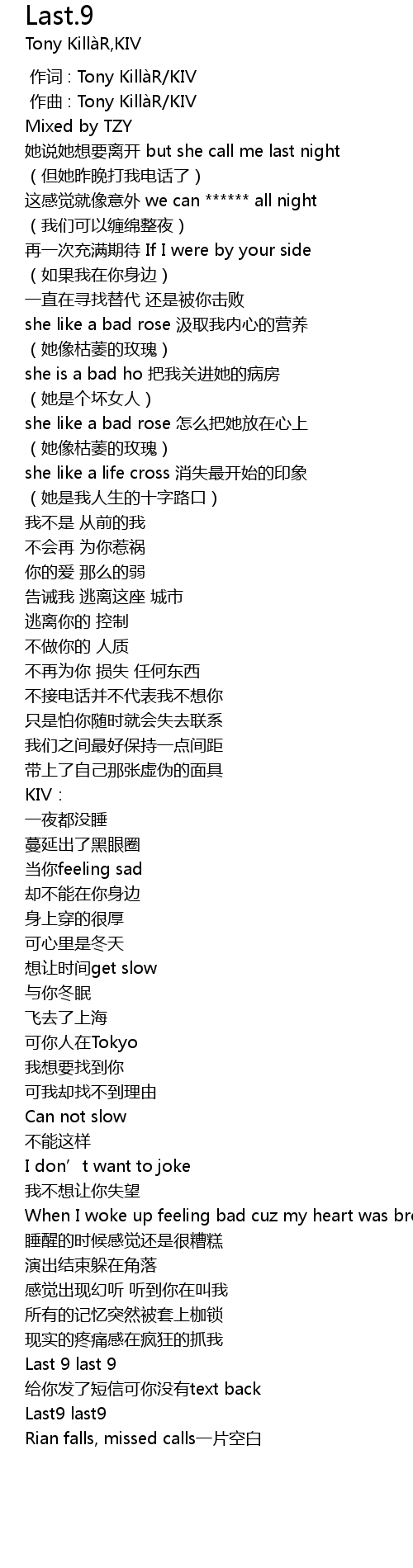 | [00:01.000] | zuo qu : Tony Killa R KIV |