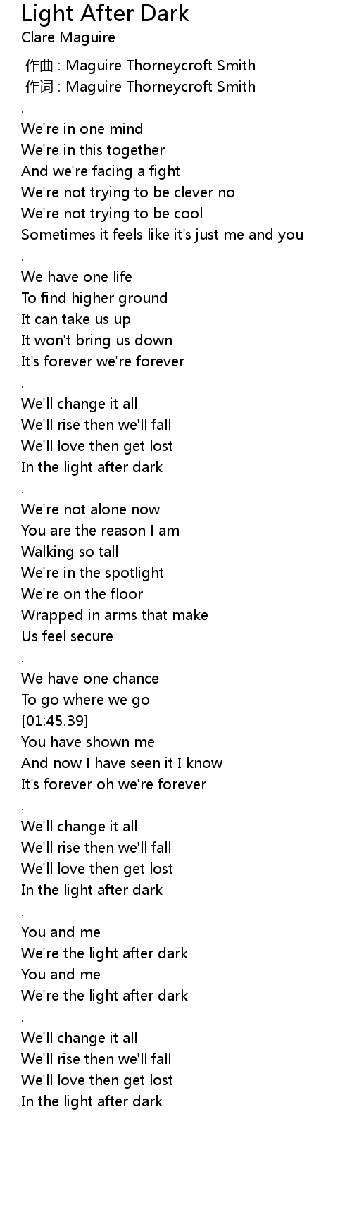 | [01:15.39] | In the light after dark |