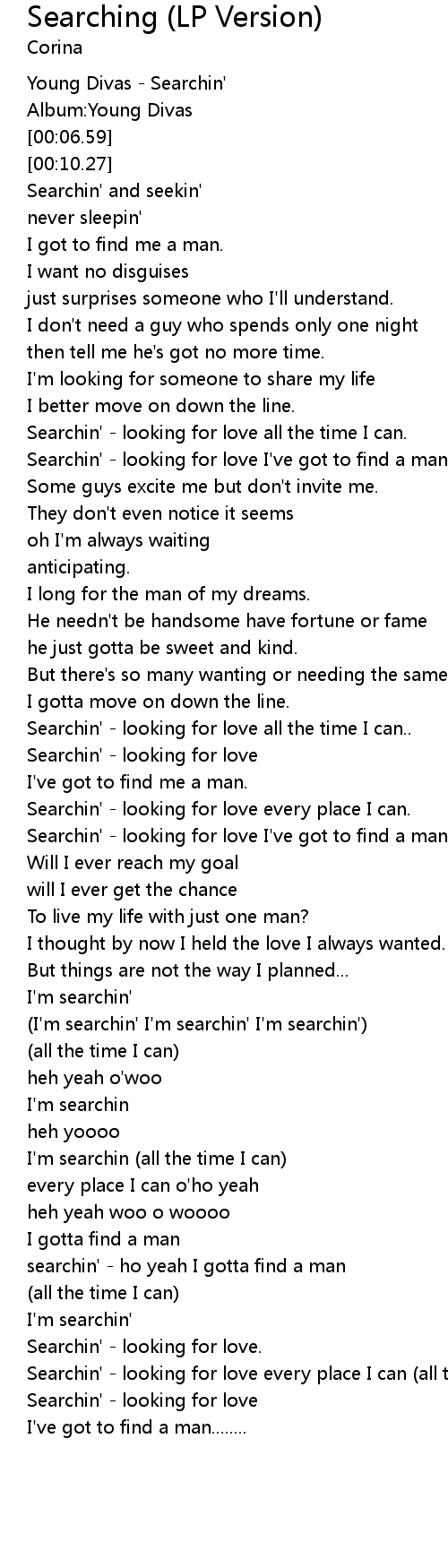 | [02:59.26] | searchin' - ho yeah I gotta find a man |