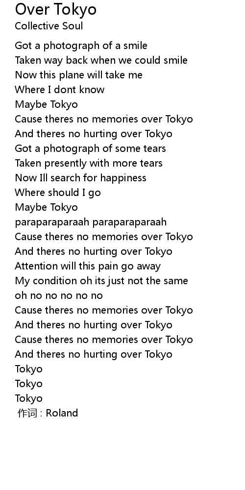 | [00:43] | Cause theres no memories over Tokyo |