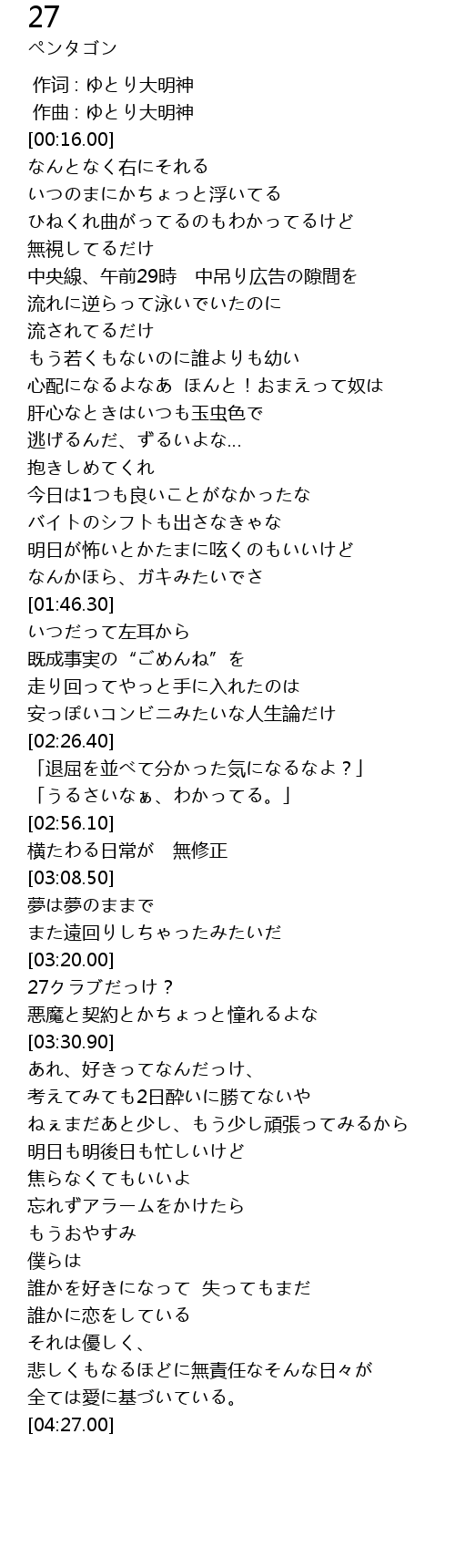 | [03:20.50] | 27クラブだっけ? |