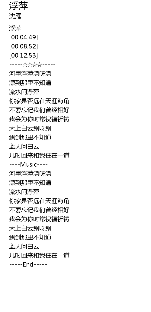 | [00:02.30] | 浮萍 |