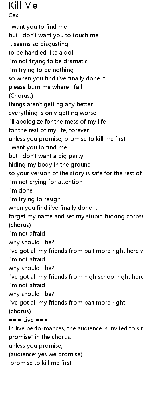 | unless you promise, promise to kill me first | |
