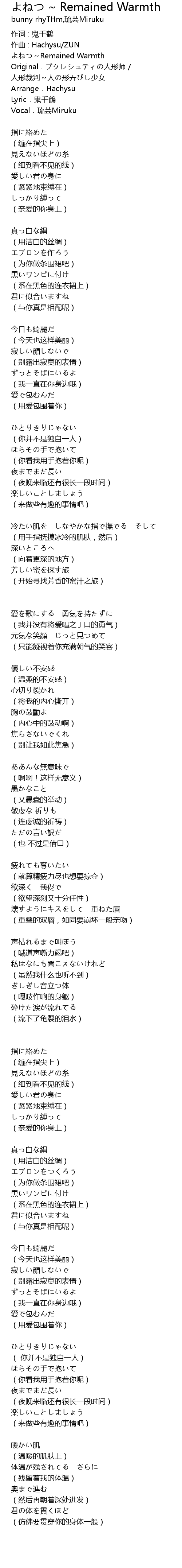 | (残留着我的体温) | |