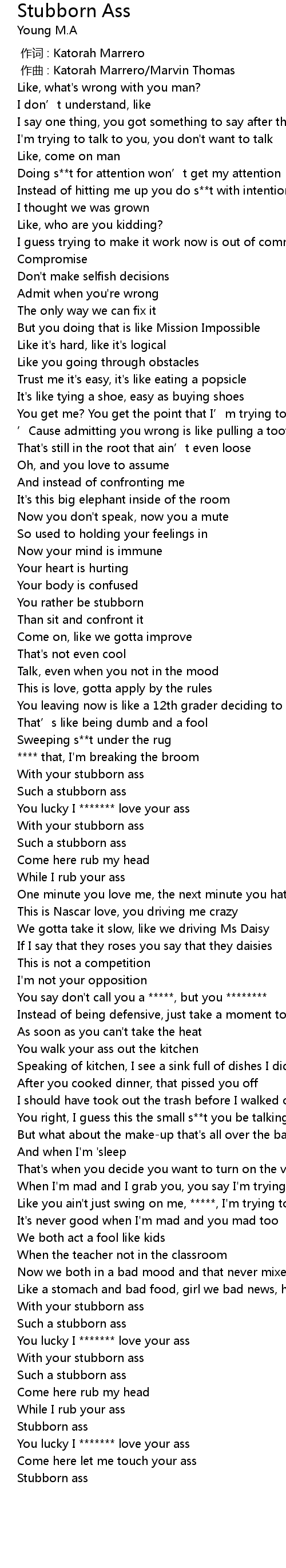 | 歌曲 | Stubborn Ass |
