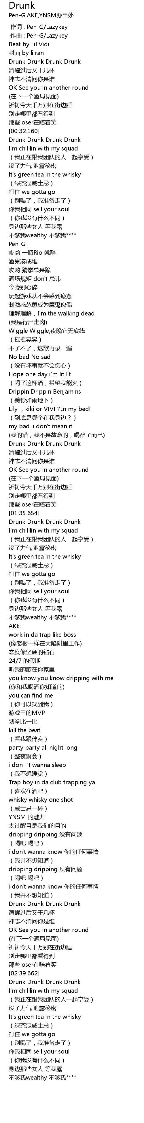 | [00:33.658] | Drunk Drunk Drunk Drunk |