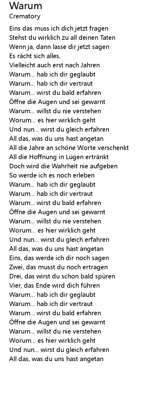 | Warum... willst du nie verstehen | |