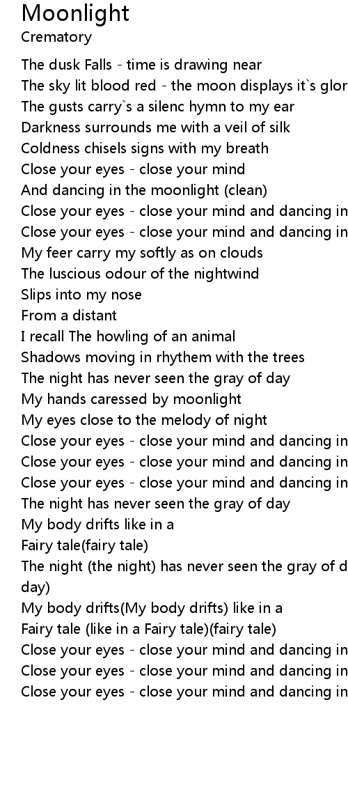 | Close your eyes - close your mind and dancing in the moonlight |