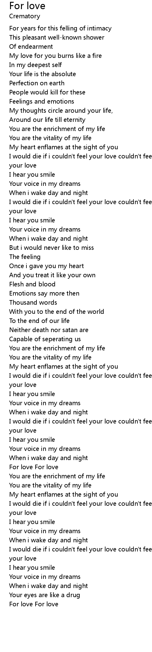 | I would die if i couldn't feel your love couldn't feel your love couldn't feel your love | |