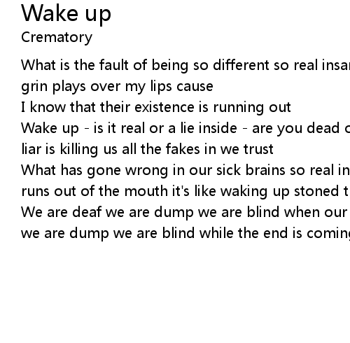 Wake up - is it real or a lie inside - are you dead or alive wake up - when our liar is killing us all the fakes in we trust |
