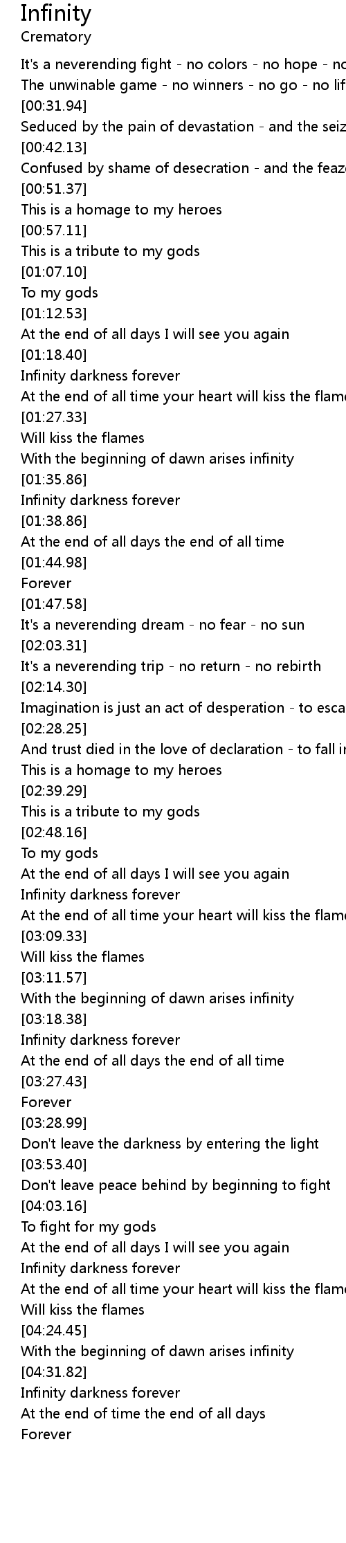 | [04:32.38] | Infinity darkness forever |