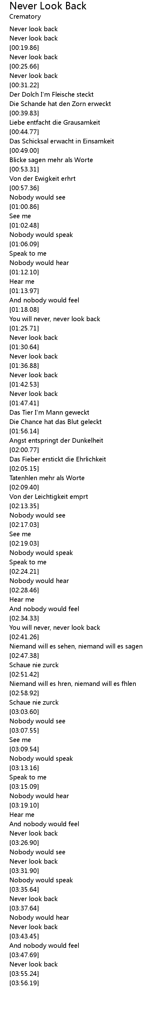 | [02:54.98] | Niemand will es hren, niemand will es fhlen |