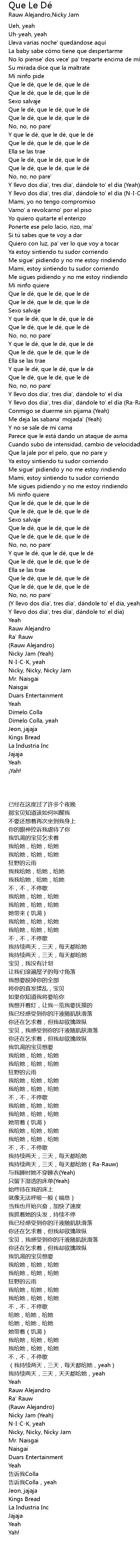 | [02:52.64] | Y que le de, que le de, que le de |