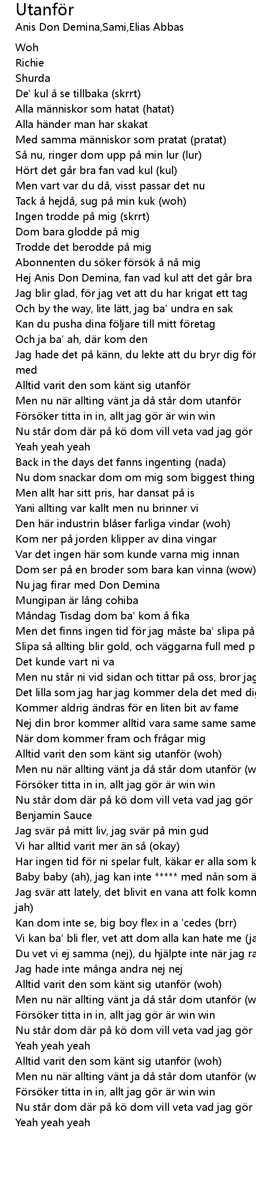 | [00:18.49] | Tack å hejdå, sug på min kuk (woh) |