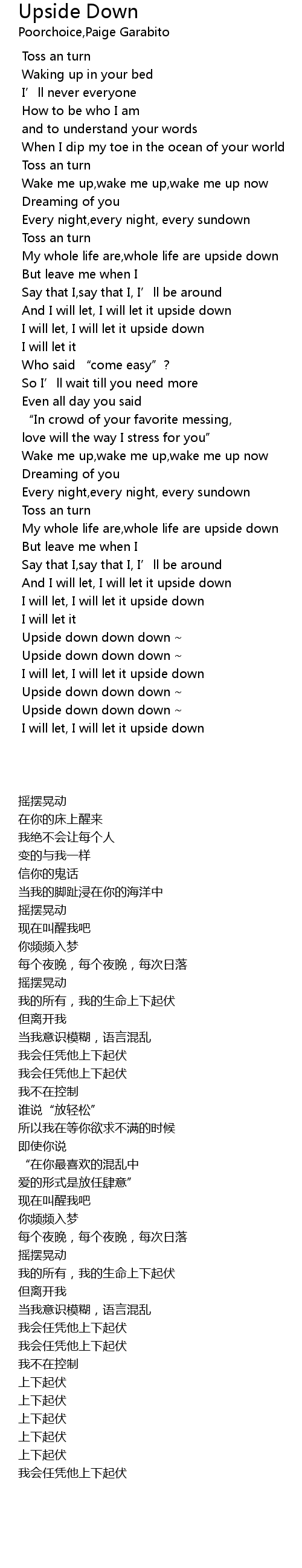 | [00:47.935] | My whole life are,whole life are upside down |