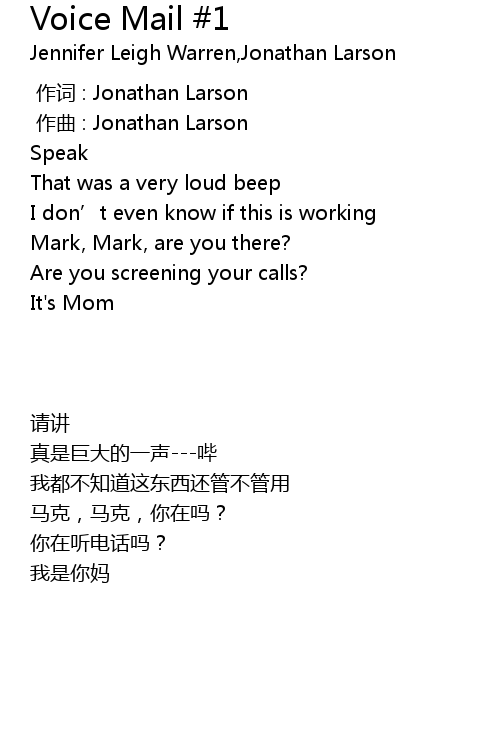 | [00:00.000] | zuo ci : Jonathan Larson |