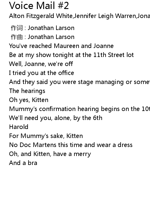 | [00:00.000] | zuò cí : Jonathan Larson |