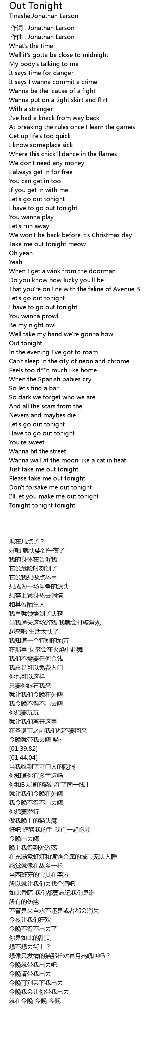 | [02:53.63] | Let's go out tonight |