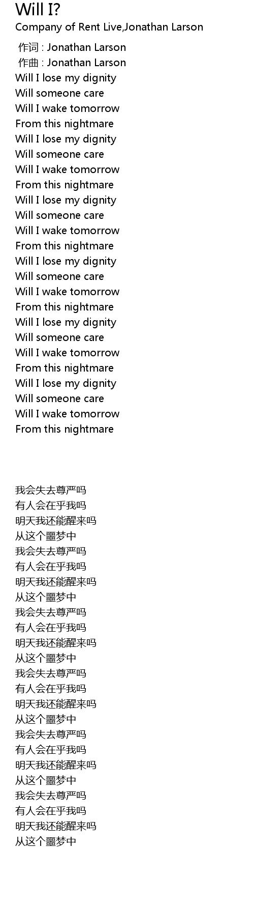 | [00:00.000] | zuò cí : Jonathan Larson |
