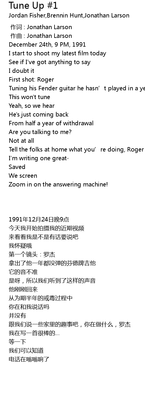 | [00:00.000] | zuò cí : Jonathan Larson |