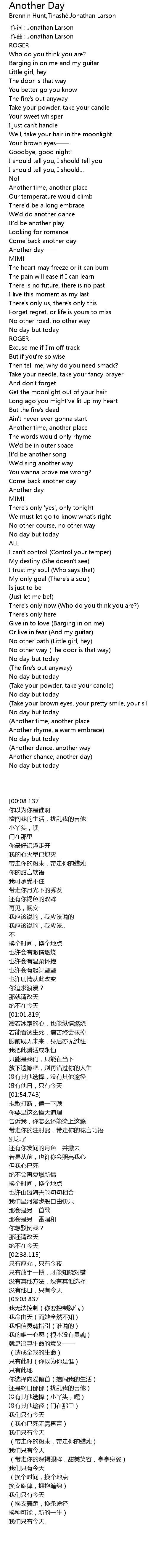 | 歌曲 | Another Day |