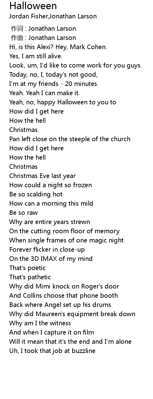 | [00:00.000] | zuò cí : Jonathan Larson |