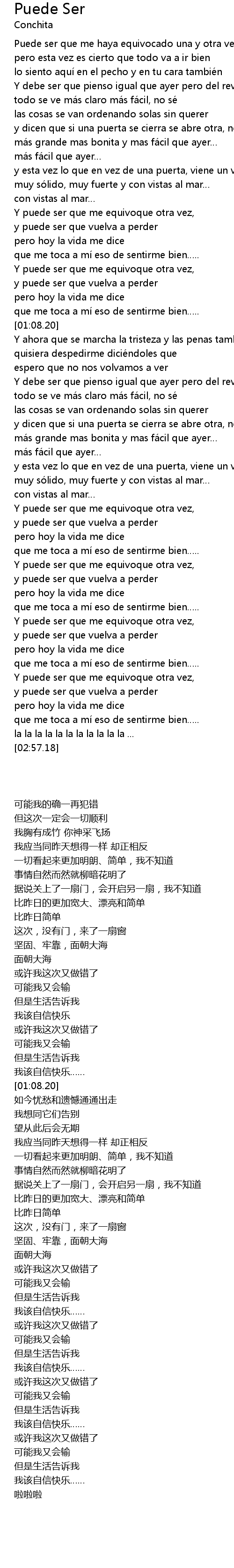 | [00:00.34] | Puede ser que me haya equivocado una y otra vez |