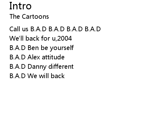 | [00:29.60] | Call us B.A.D B.A.D B.A.D B.A.D |