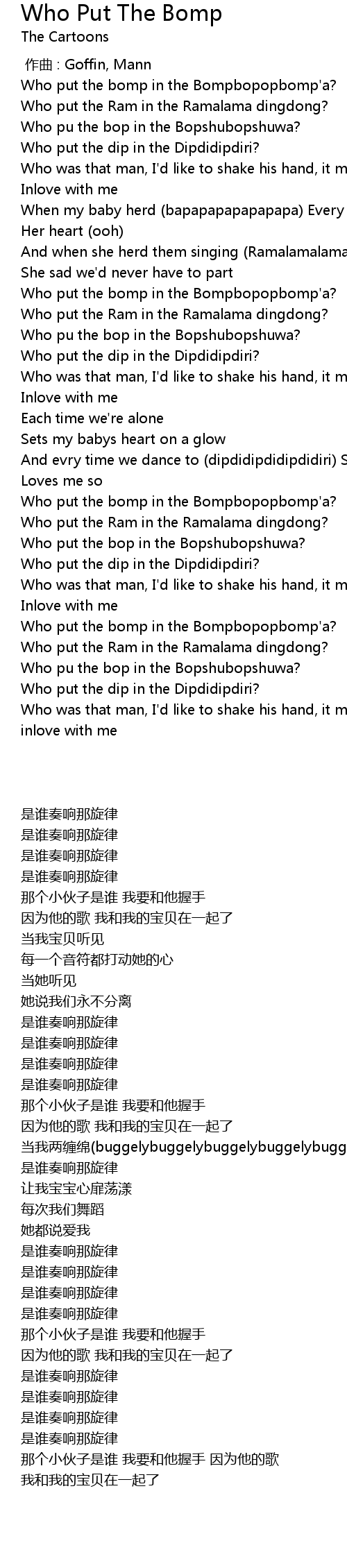 | 歌曲 | Who Put The Bomp |