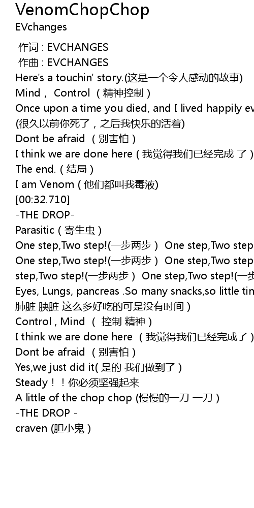 | [00:30.453] | I am Venom ( 他们都叫我毒液) |