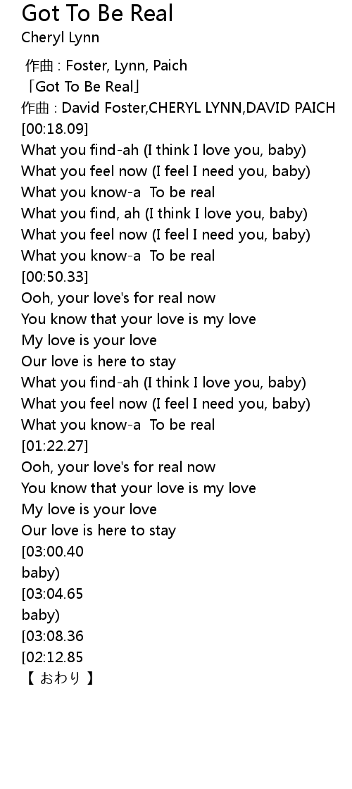 | [00:01.09] | 「Got To Be Real」 |