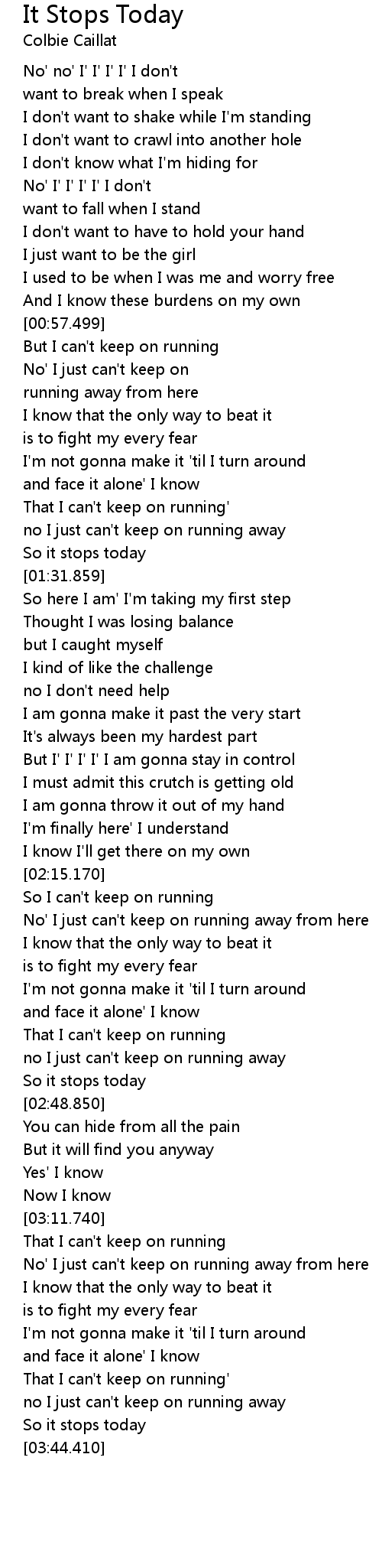 | [03:13.730] | No' I just can' t keep on running away from here |