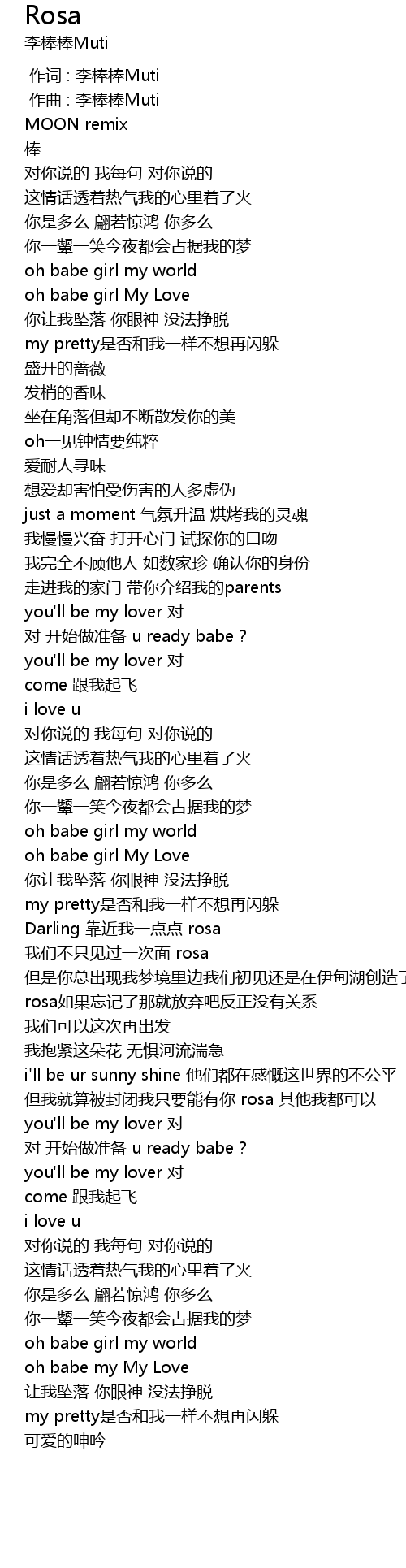 | [00:00.000] | 作词 : 李棒棒Muti |
