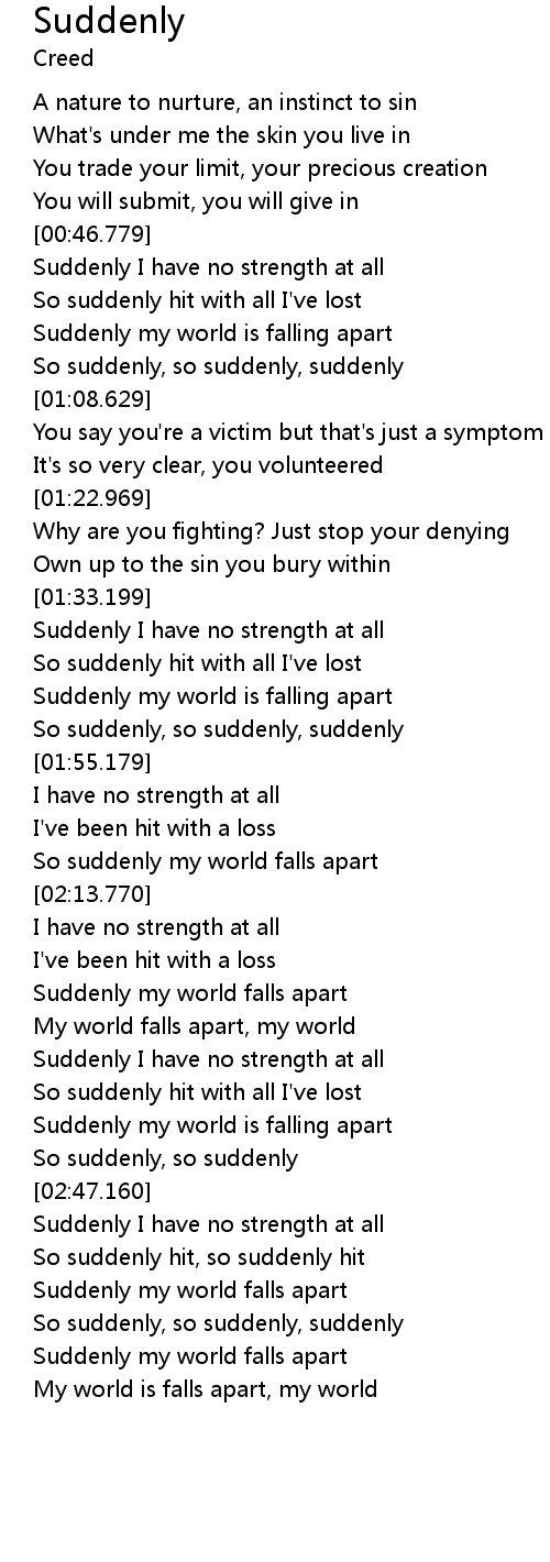| [02:59.500] | Suddenly my world falls apart |