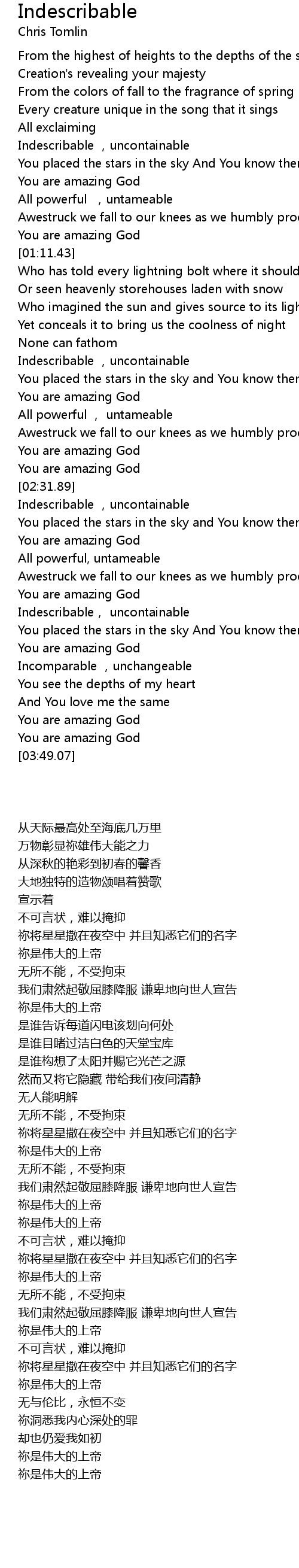| [01:58.09] | You are amazing God |