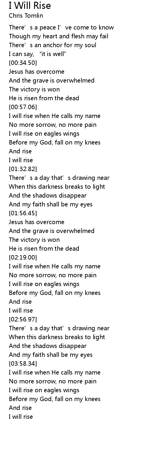 | [00:57.36] | I will rise when He calls my name |