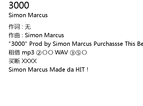 | "3000" Prod by Simon Marcus Purchassse This Beat Contact me 见个人主页 | |