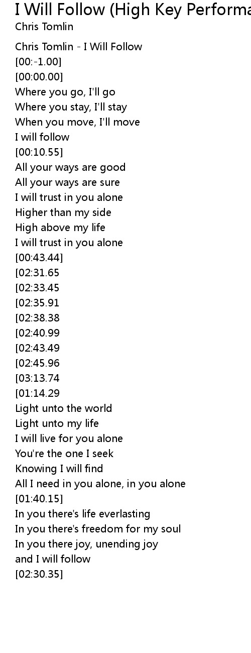 I Will Follow (High Key Performance Track Without Background Vocals) 歌词