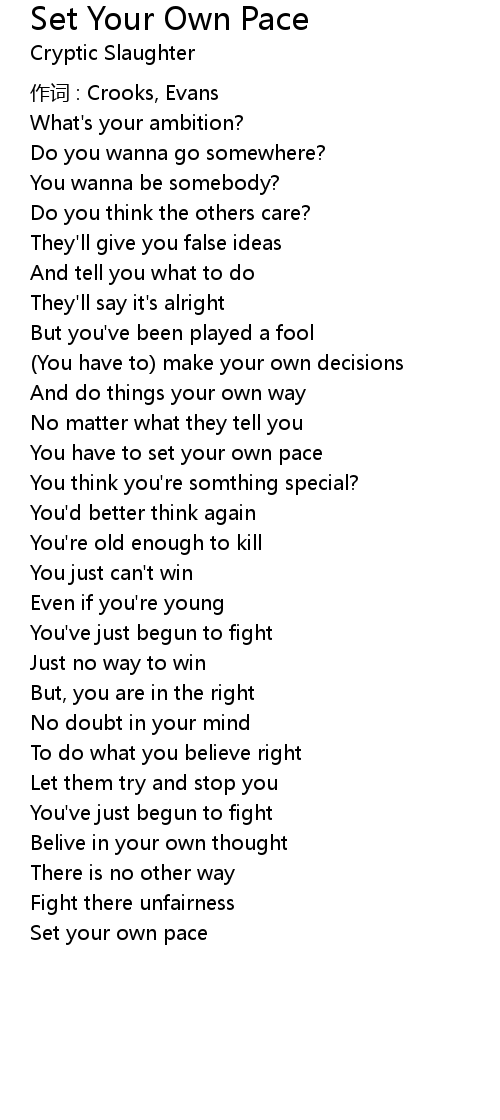| 歌曲 | Set Your Own Pace |