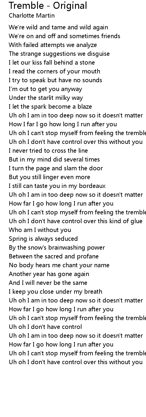 Uh oh I can't stop myself from feeling the tremble |