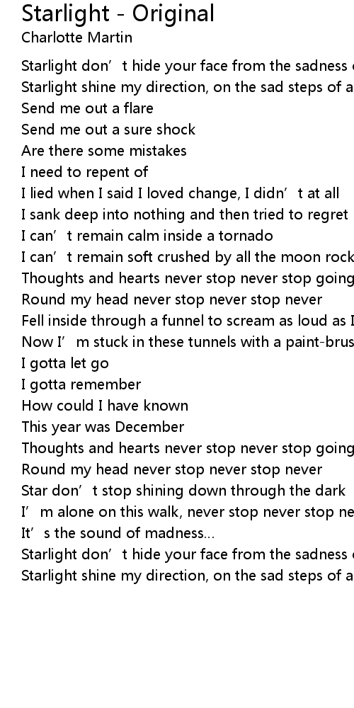 | Starlight shine my direction, on the sad steps of a sad girl |