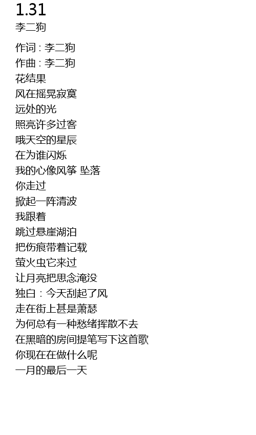 | 作词 : 李二狗 | |