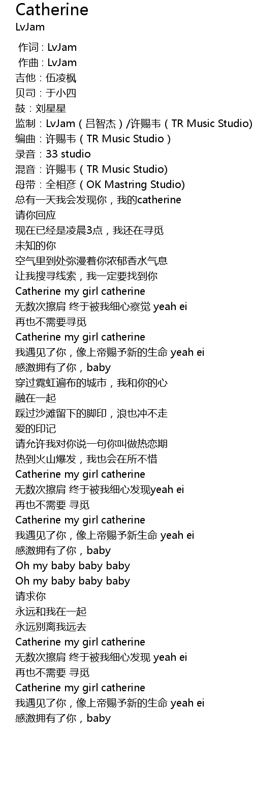 | [00:01.179] | jian zhi: LvJam lv zhi jie xu ci wei TR Music Studio |