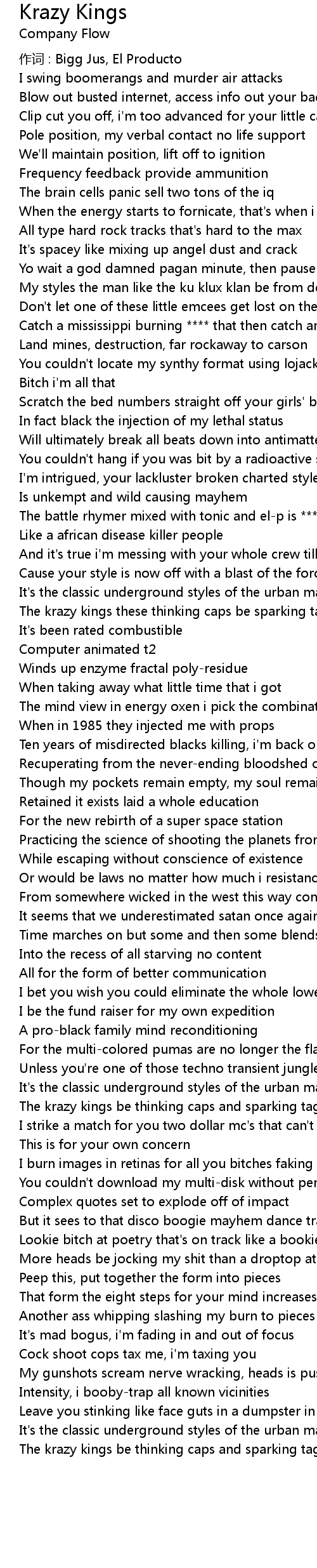 | The krazy kings be thinking caps and sparking tags quick x8 |