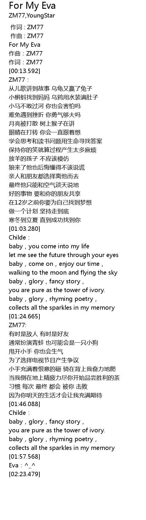 | [00:00.000] | 作词 : ZM77 |