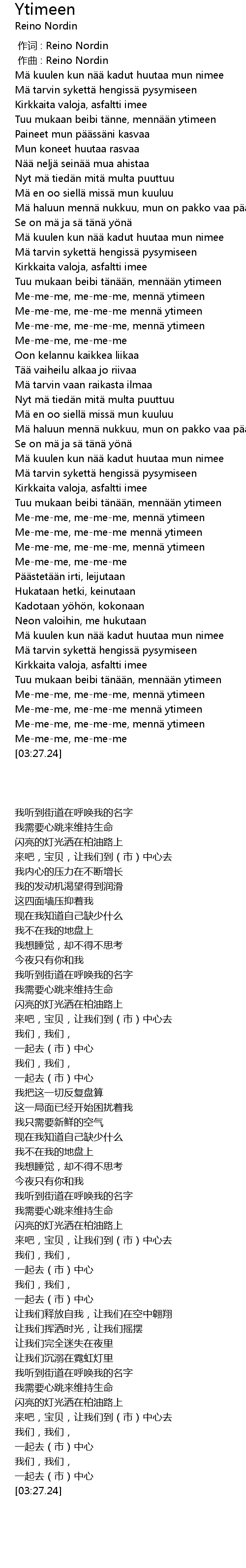 | [00:00.000] | 作词 : Reino Nordin |