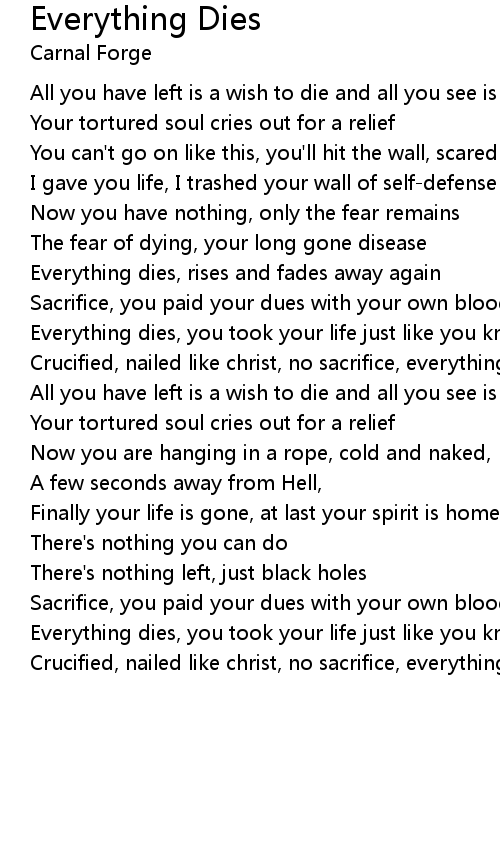 Everything dies, you took your life just like you knew I would |